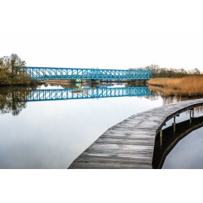 Diset maj morgen ved Storkeengen, Gudenåen og Den Blå Bro i Randers